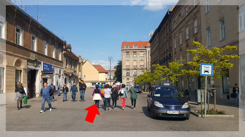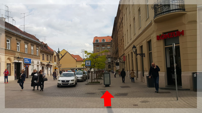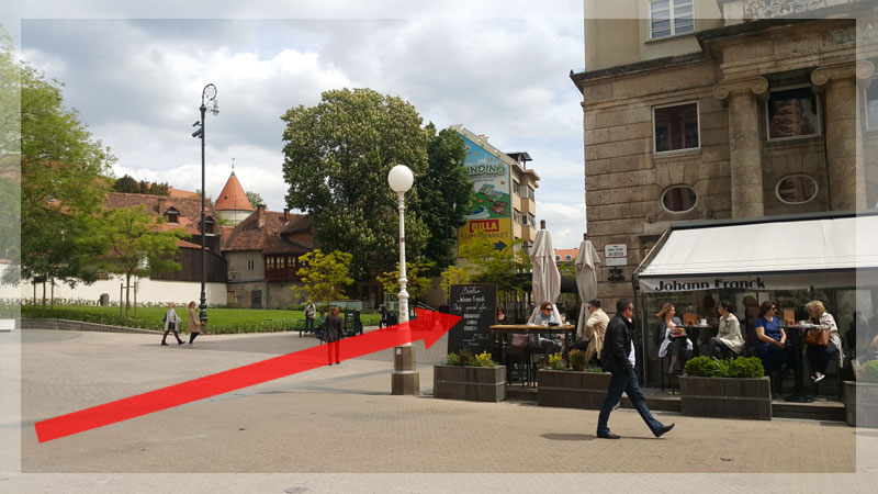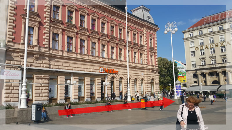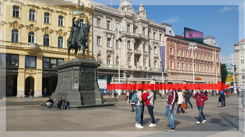 Bana Josipa Jelačića µ¿»óÀ» º¸°í Müller ¹éÈ­Á¡À» µû¶ó ¿À¸¥ÂÊÀ¸·Î À̵¿ÇÕ´Ï´Ù.