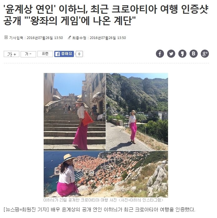 'À±°è»ó ¿¬ÀÎ' ÀÌÇÏ´Ì, ÃÖ±Ù Å©·Î¾ÆÆ¼¾Æ ¿©Çà ÀÎÁõ¼¦ °ø°³ "'¿ÕÁÂÀÇ °ÔÀÓ'¿¡ ³ª¿Â °è´Ü"